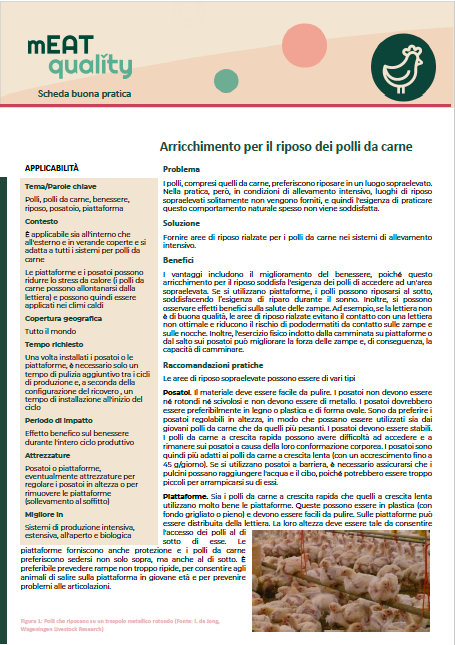 Arricchimento per il riposo dei polli da carne