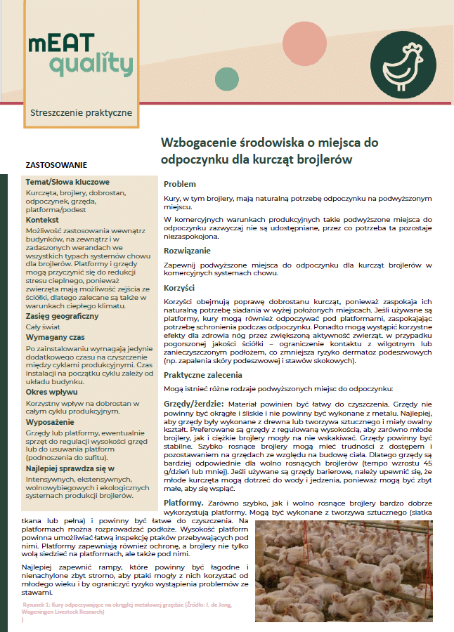 Wzbogacenie środowiska o miejsca do odpoczynku dla kurcząt brojlerów