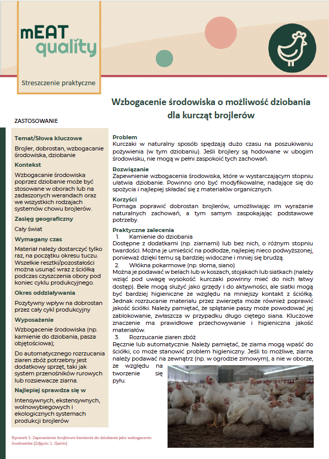 Wzbogacenie środowiska o możliwość dziobania dla kurcząt brojlerów
