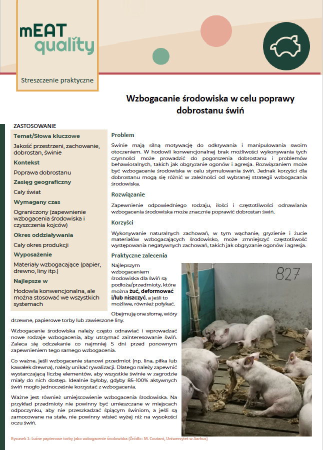 Wzbogacanie środowiska w celu poprawy dobrostanu świń w chowie konwencjonalnym