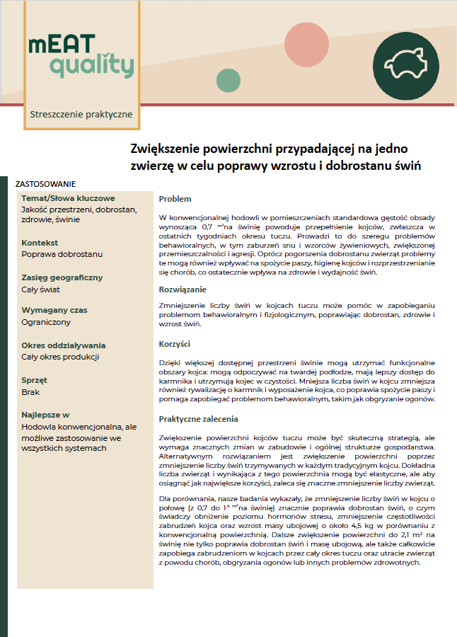 Zwiększenie powierzchni przypadającej na jedno zwierzę w celu poprawy wzrostu i dobrostanu świń